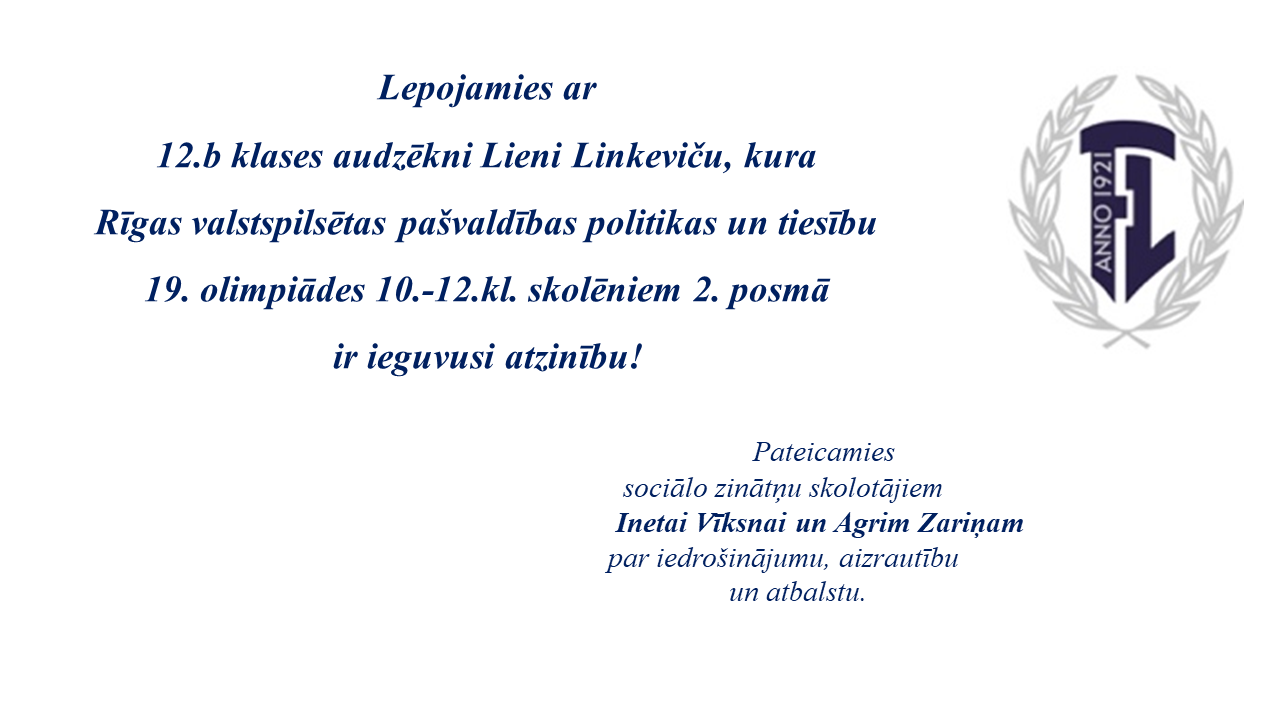 2026. gada 2. februārī VEF Kultūras pilī svinīgajā pasākumā “Rīgas skolēns 2025. Mēs lepojamies!” sumināja Rīgas pašvaldības skolu labākos skolēnus. Skolēniem tika pasniegti pateicības raksti. Rīgas domes pateicību par labiem, teicamiem un izciliem mācību sasniegumiem saņēma Rīgas Franču liceja 12. klases skolniece Jeļizaveta Safonova.