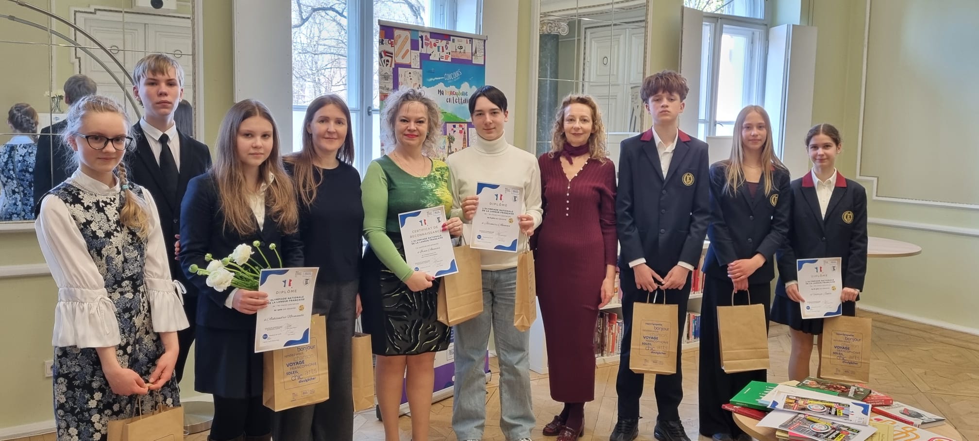 Šī gada 14. aprīlī Francijas institūtā norisinājās svinīga apbalvošanas ceremonija, kurā tika godināti franču valodas olimpiādes laureāti. Lepojamies ar mūsu skolēnu rezultātiem 56. Atklātās franču valodas olimpiādes 3. (valsts) posmā 8.- 9. klasēm. Paldies mūsu talantīgajiem skolēniem par ieguldīto darbu un franču valodas skolotājiem par profesionālo atbalstu!