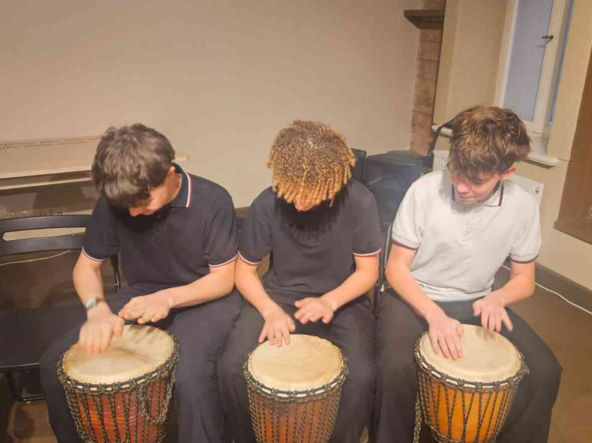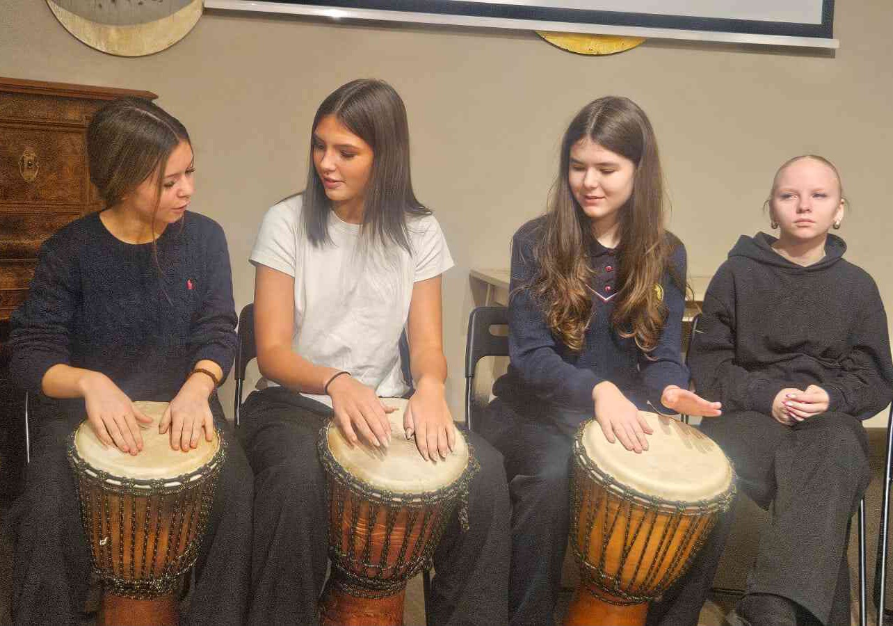 Perkusiju mākslas lietpratēju Nila Īles un Maijas Sējānes Īles vadībā 3.d un 6.abcd klašu skolēniem bija lieliska iespēja iepazīt un izzināt ritma un skaņas pasauli. Skolēniem caur kopīgu instrumentu saspēli bija iespēja  iepazīt skaņas daudzveidīgo burvību un izmēģināt dažādus skaņu instrumentus. Katrs, kas piedalījās nodarbībā, saka māksliniekiem paldies par pozitīvajām vibrācijām un iedvesmojošo muzicēšanu kopā!