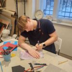 Otrajā daļā mācību telpā “Virtakas klase” skolēni darbojās praktiski un veidoja savu versiju vienam grāmatas stāstam. Skolēni domāja tekstu un veidoja ilustrāciju jauktā tehnikā, izmantojot akrila krāsas, sūkļus, trafaretus un eļļas pasteļus.