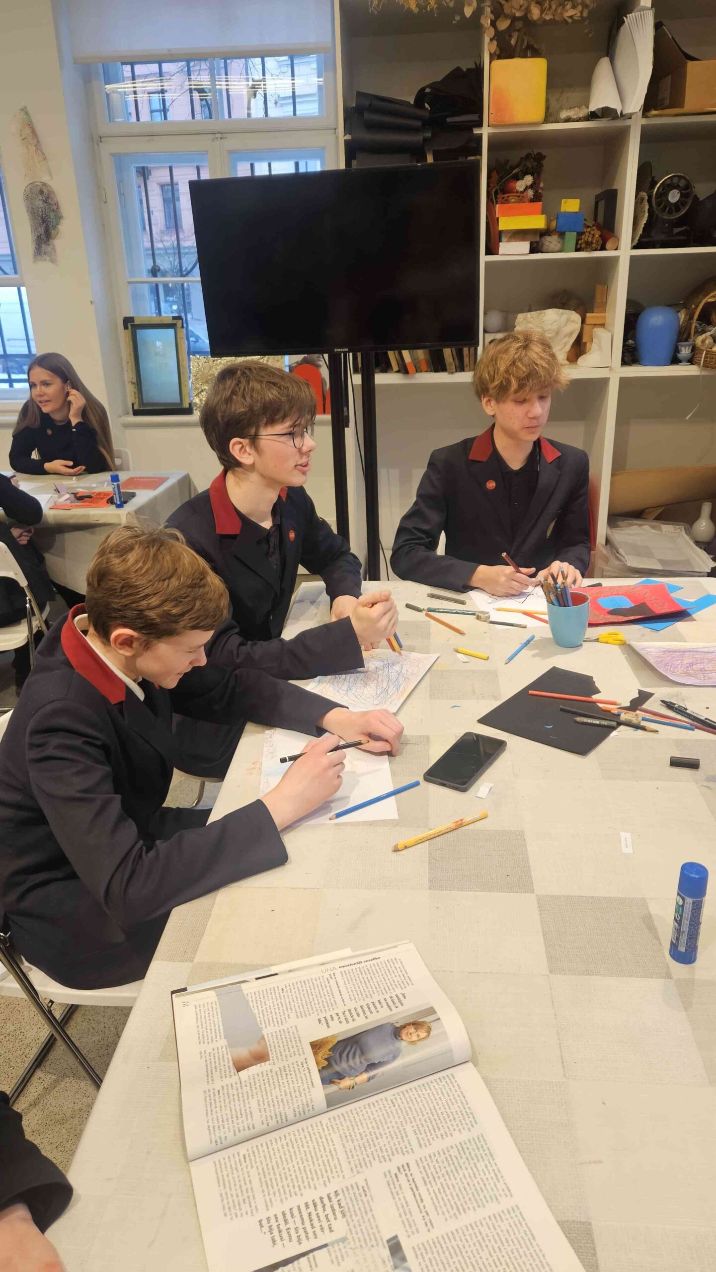 Programmas “Latvijas skolas soma” ietvaros decembrī arī 8.a klases skolēni apmeklēja Latvijas Kino muzeju, kur piedalījās nodarbībā “Kā top kino? Latviešu filmu mākslinieki”. Jaunieši guva ieskatu mazāk pamanāmu, taču neaizstājamu profesiju pārstāvju darbā, uzzinot par dekorāciju, kostīmu, grima un specefektu meistaru būtisko ieguldījumu Latvijas kino industrijā. Teorētiskās zināšanas papildināja izstādes “Uzburt pasaules. Latvijas filmu mākslinieki” apskate. Tā aptver mākslinieku veikumu vairāk nekā 100 gadu garumā – no pašas pirmās Latvijas Republikā uzņemtās spēlfilmas “Es karā aiziedams” līdz pat mūsdienu kinomākslas sasniegumiem. Izstādē skolēni redzēja unikālas kinovēstures liecības: dekorāciju un kostīmu skices, to praktisko īstenojumu ekrānā, specefektu tehnoloģiju attīstību dažādos laika posmos, kā arī kanonisku Latvijas filmu vides kopijas.