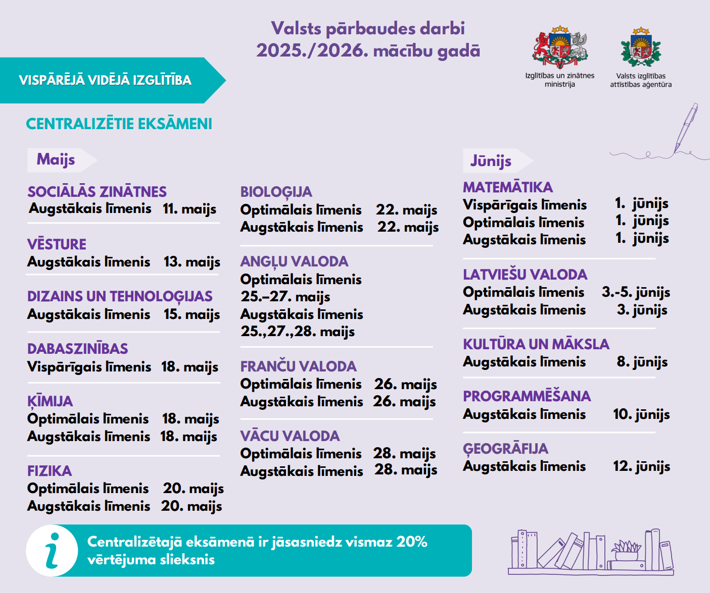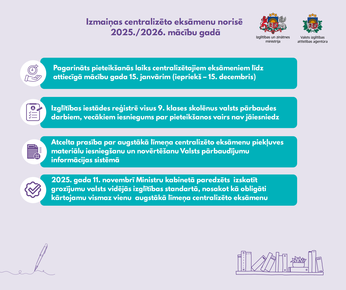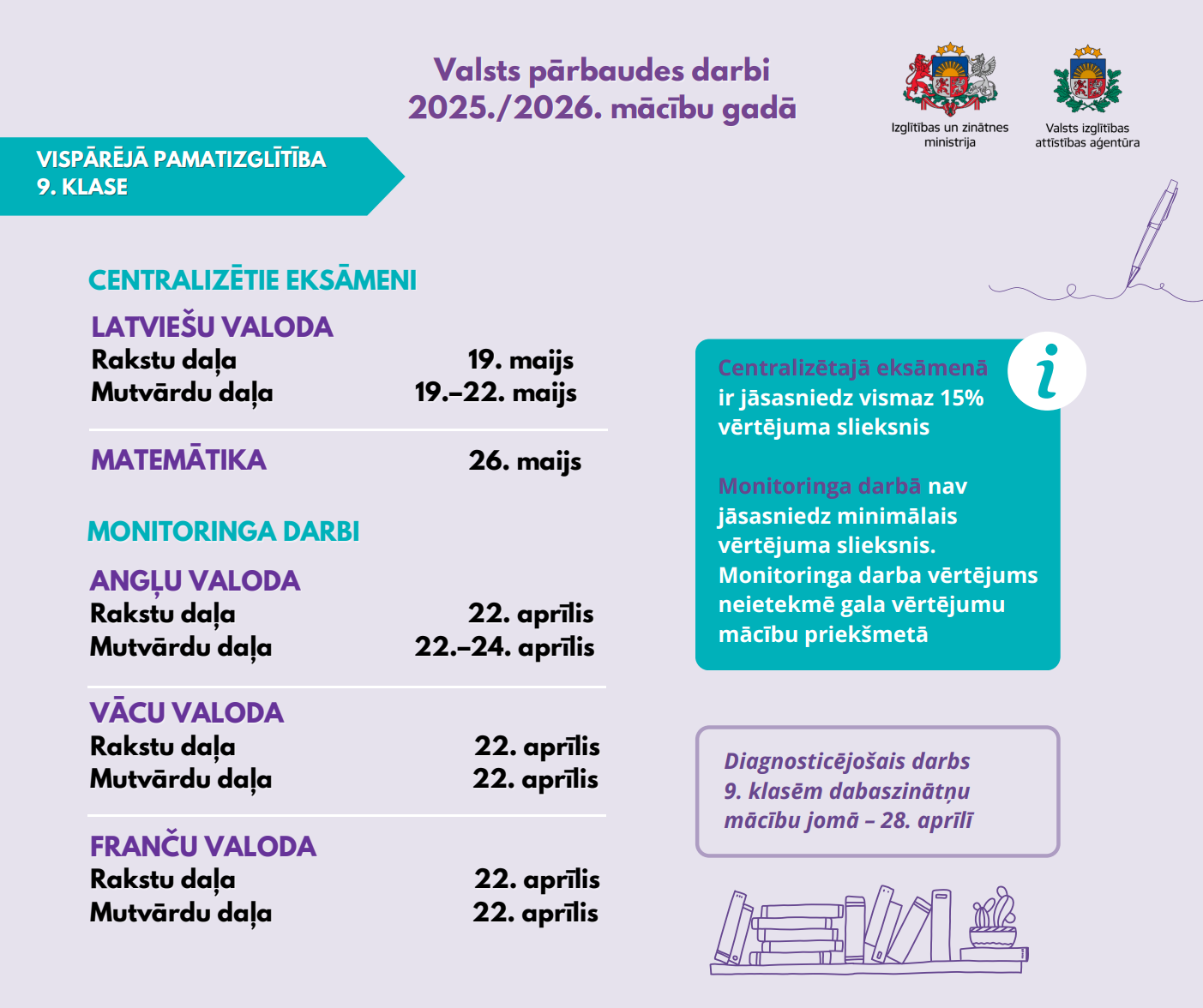Valsts pārbaudes darbu norise 2025./2026.mācību gadā.